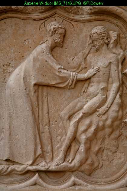 Auxerre, cathedral: West portal scene: Creation of Adam, 13C