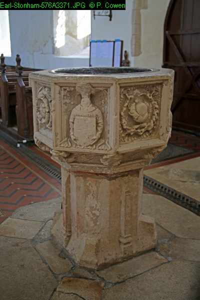 Earl Stonham: Font with fleur-de-lis decoration face, 15C