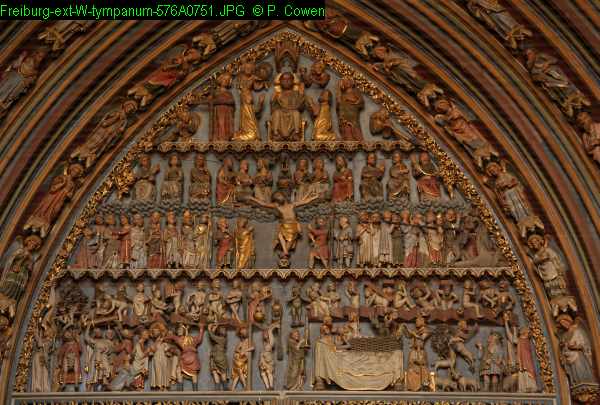 Freiburg: tympanum with Last Judgement, the Nativity and Passion of Christ (cf. Strasbourg Wise and Foolish Virgins), late 13C