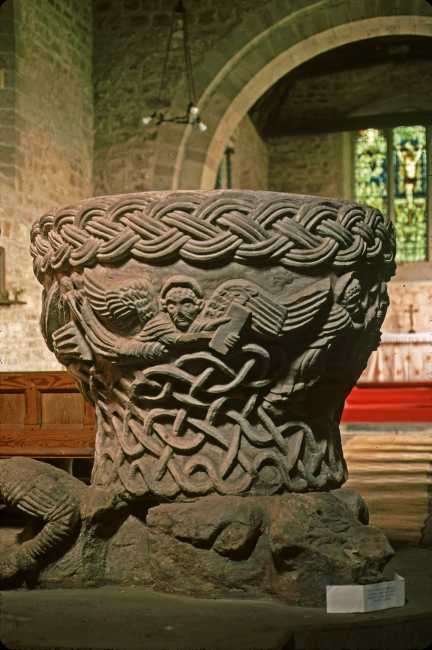 Font. The Jordan Baptism and the angel of St Matthew the Evangelist symbol. c.1170