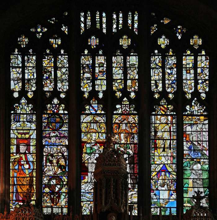 The glass here is mostly a mixture of foreign panels reset into some of the windows. Some were originally at Fonthill Abbey and Lypiatt Park PE - Poynce Chapel window