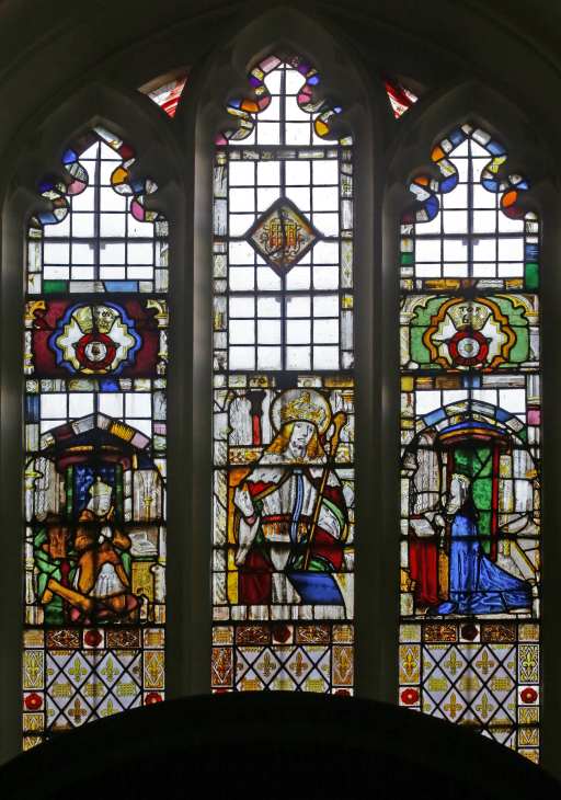 Henry VII between Edward the Confessor and his mother Lady Margaret Beaufort who endowed the college in 1505