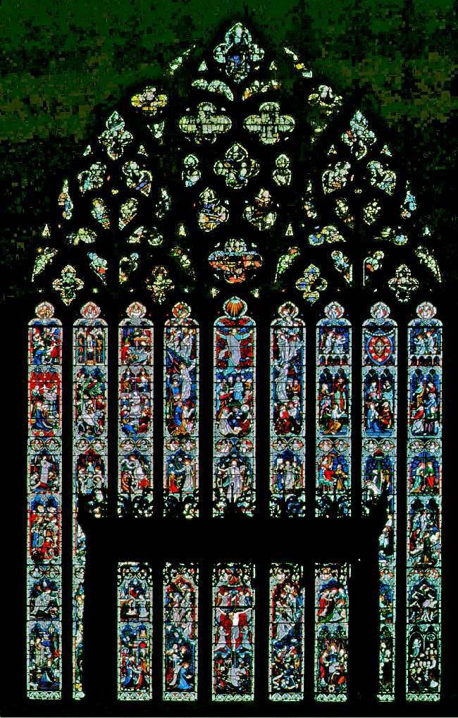 Carlisle, Cathedral The magnificent E window has in its tracery some fine, recently restored C14 glass depicting scenes from the Last Judgement