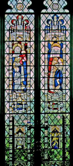 Ufford, St Mary of the Assumption C19 copies of C15 glass in the east window and Continental roundels in another window