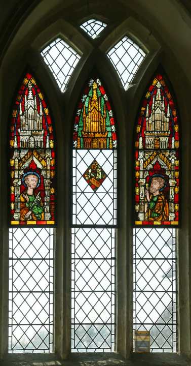 s.VI Two half figure of saints under canopies with heraldic eagles in the border