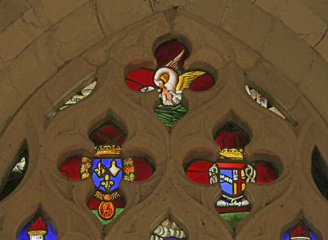 Arms of France and of local alliances (the 'pelican' is modern) __ return