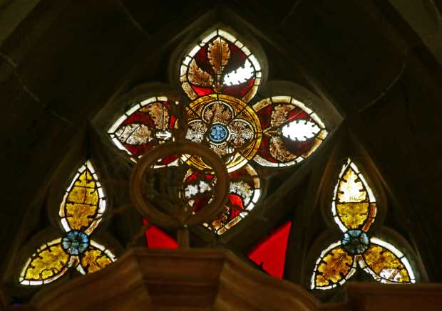 The sun and the moon, probably the top of a Crucifixion window that was destroyed in the early C19