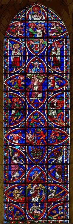 Date: c. 1220 - and C19 (much!) The Trinity with saved souls above it, condemned souls below it and souls rising at Last Judgement