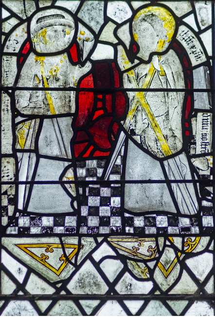 A fine panel of the Trinity in C15 Norwich glass is the center-piece of the window although there are other C15 panels below and above