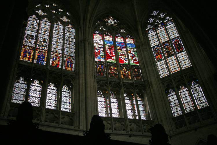 Vendome, Eglise: La Trinity East end: clerestory late C13 grisaille and modern